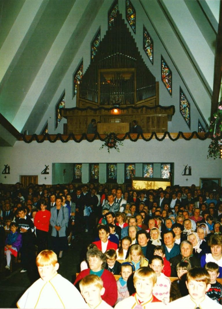 Uroczyste poświęcenie organów odbyło się 5 września 1993 roku i było połączone z uroczystością odpustową oraz X rocznicą poświęcenia kościoła. Ową uroczystość uświetnili zaproszeni goście m.in. ks. bp Józef Życiński oraz ks. Leon Sądowicz (były proboszcz parafii). Ksiądz biskup ordynariusz dokonał uroczystego poświęcenia organów na których został odegrany krótki koncert przed Mszą Św. przez prof. Mieczysława Tuleji z Krakowa. Licznie przybyli goście, parafianie oraz mieszkańcy okolicznych wiosek wspólnie przeżywali to niezwykłe wydarzenie, które zapisało się w pamięci wszystkich.